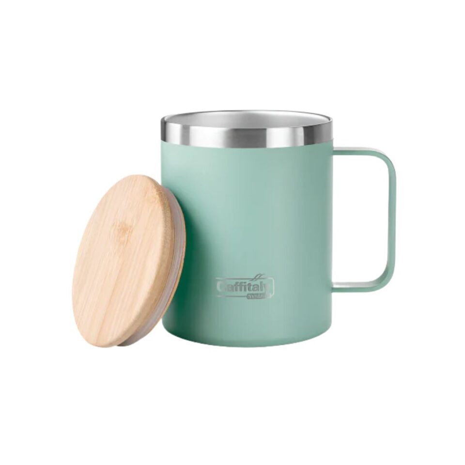 La Travel Mug Green Caffitaly è la compagna ideale per ogni momento della giornata: in auto, a lavoro o in movimento. Realizzata in acciaio inox a doppia parete, mantiene le tue bevande calde a lungo, mentre il coperchio in bamboo con chiusura antischizzo garantisce praticità e sicurezza.